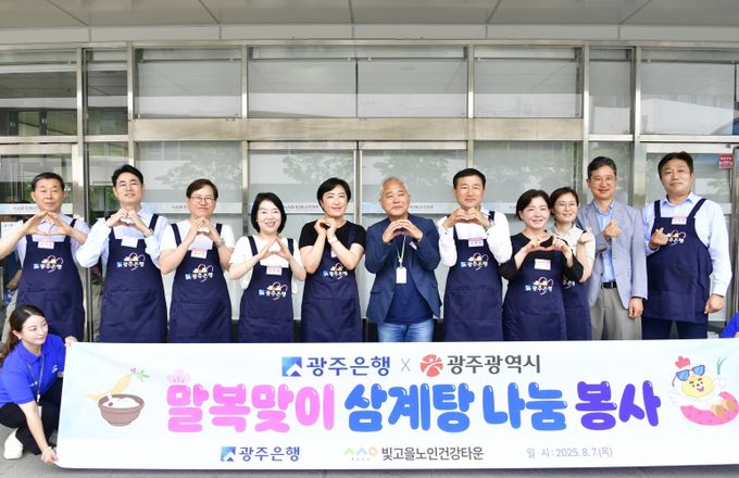 이날 행사에는 신수정 의장을 비롯한 시의원 9명과 고병일 광주은행장을 포함한 임직원들이 참여해 어르신들에게 삼계탕을 정성껏 배식하고, 부채 등 나눔 물품을 전달하며 안부를 살폈다.