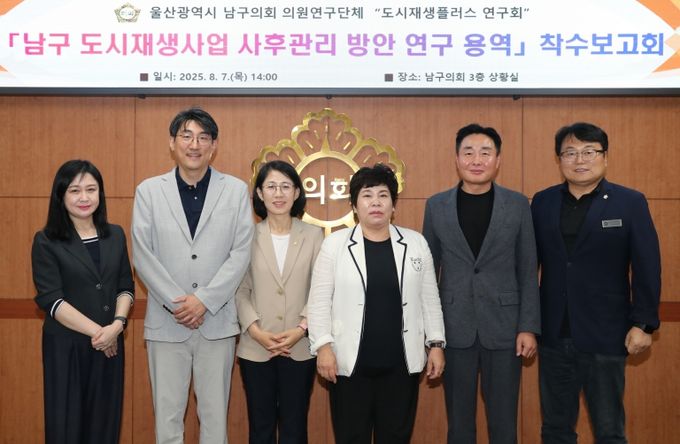 [경남도민뉴스=최재경 기자] 울산 남구의회 의원연구단체인 도시재생플러스연구회는 7일 3층 의회상황실에서 남구 도시재생사업 사후관리 방안 연구 용역 착수보고회를 개최했다.