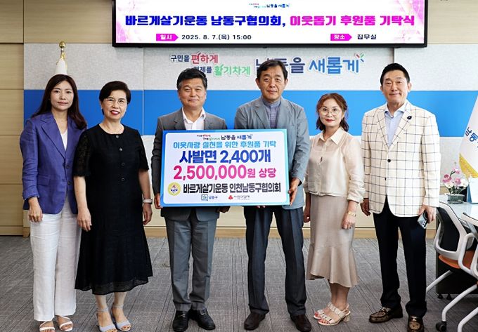 한편, 바르게살기운동 인천남동구협의회는 밝고 건강한 국가, 사회건설에 이바지하는 것을 목적으로 하는 국민운동단체로, 롤화장지, 봉지 김, 계절 김치 등 다양한 후원품을 꾸준히 기부해 이웃들을 위한 나눔을 이어나가고 있다.