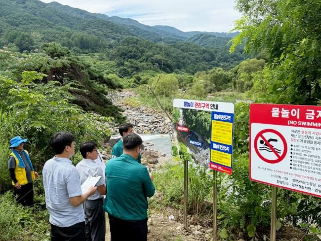 [경남도민뉴스=장광동 기자] 함양군은 여름 휴가철을 맞아 물놀이 인파가 급증하는 성수기를 대비해 8일 행정안전부, 경상남도와 함께 물놀이 관리구역에 대한 긴급 합동 안전점검을 실시했다.