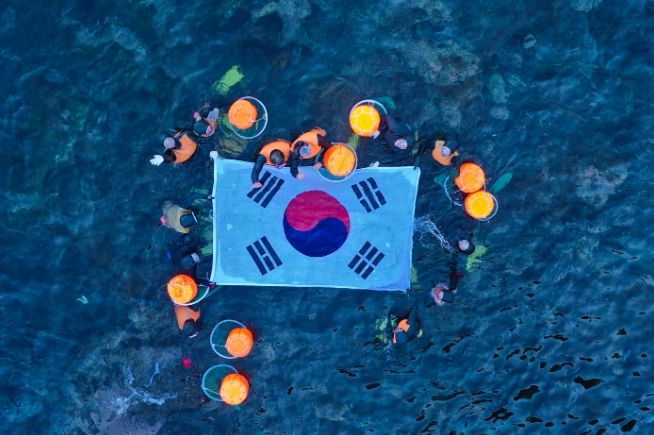 [경남도민뉴스=하형수 기자] 광복 80주년을 맞아 8일 화창한 푸른 하늘 아래 독도 몽돌해안에서 특별한 물질이 펼쳐졌다. 제주와 울릉 해녀들이 바다에 뛰어들어 과거 이들의 선배가 총칼 없이 평화롭게 우리 영토를 지켜냈던 역사를 재현한 것이다.