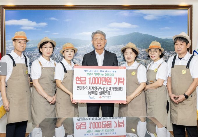 [경남도민뉴스=김용욱 기자] 인천광역시 계양구는 11일 계양구노인인력개발센터 장미원실버카페 사업단이 계양구 지역 어르신들을 위해 기부금 1천만 원을 전달했다고 밝혔다.