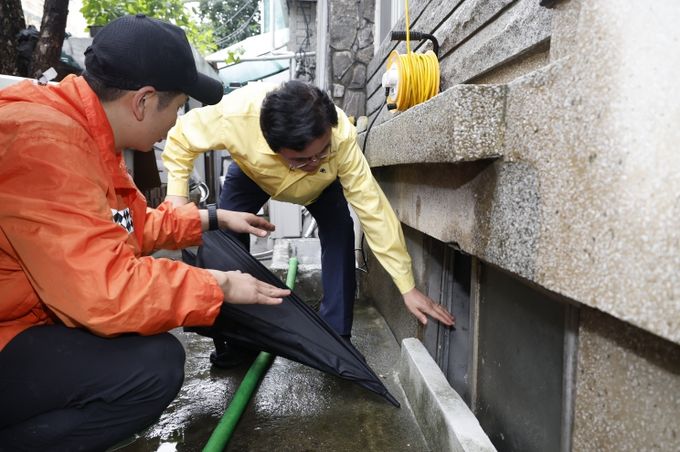 [경남도민뉴스=류종길 기자] 진교훈 서울 강서구청장이 13일 기록적인 폭우로 피해를 입은 반지하 침수 현장을 찾아 피해상황을 점검했다.