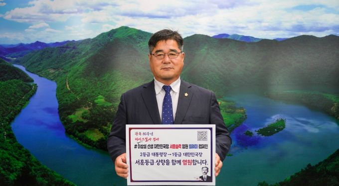 충북 괴산군의회 김낙영 의장이 8일, 보재 이상설 선생의 서훈을 대통령장(2등급)에서 대한민국장(1등급)으로 격상하자는 취지의 '이상설 선생 서훈 승격 염원' 릴레이 캠페인에 동참했다.