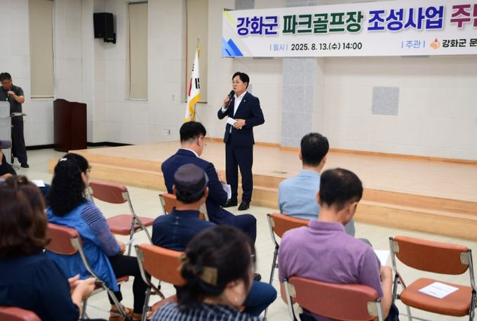 [경남도민뉴스=김용욱 기자] 강화군은 지난 13일 양도면 주민자치센터에서 ‘강화군 파크골프장 조성사업 주민설명회’를 개최했다.