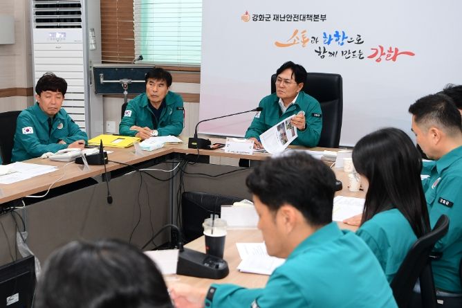 [경남도민뉴스=김용욱 기자] 박용철 강화군수는 지난 13일 강화군 지역에 호우경보가 발효된 가운데 재난안전대책본부 점검회의를 열고 집중호우 대처 상황을 확인하며 철저한 대비를 당부했다.