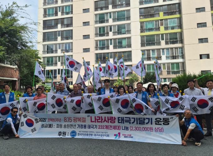 [경남도민뉴스=백상현 기자] 한국자유총연맹 대구수성구지회(회장 김인선)는 제80주년 광복절을 맞아 이달 11일부터 15일까지 ‘나라사랑 태극기 달기 운동’을 펼쳤다.