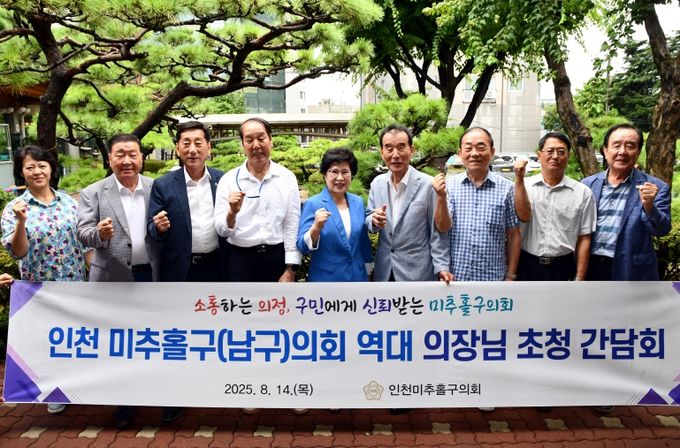 [경남도민뉴스=김용욱 기자] 인천광역시 미추홀구의회는 8월 14일, 역대 의장들을 초청해 간담회를 개최하고, 의회의 발전과 의정 운영의 내실화를 위한 고견을 청취하는 자리를 마련했다.