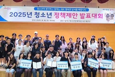 [경남도민뉴스=백상현 기자] 대구 달서구는 지난 16일 '2025년 청소년정책제안 발표대회'와 시상식을 열고, 지난 3월부터 8월까지 진행된 정책 제안 공모를 통해 선정된 6건의 제안을 발표했다.