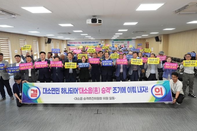 [경남도민뉴스=박만수 기자] 음성군 대소면은 18일 대소면 행정복지센터에서 ‘대소읍 승격 추진위원회 발대식’을 개최하고 공식 출범했다. 이를 통해 읍 승격에 대한 면민들의 염원을 결집하고 본격적인 승격 활동에 돌입한다.