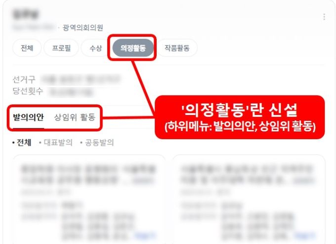특히 네이버 인물정보를 통해 예를 들어, 우리 지역 의원의 발의 조례안을 확인할 경우, 종전 도의회 홈페이지를 통해 확인할 때보다 3단계의 절차가 줄어든다.