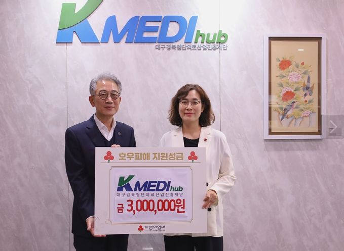 [경남도민뉴스=백상현 기자] 케이메디허브는 지난 18일 집중호우 피해지역 및 이재민 지원을 위해 성금 300만 원을 사회복지공동모금회에 기탁했다.