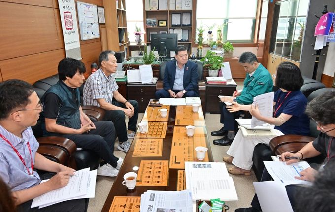 [경남도민뉴스=최재경 기자] 울산광역시의회 이장걸 행정자치위원장은 8월 18일, 시의회 5층 행정자치위원장실에서 울산지역 내 과밀 공동주택과 관련한 문제 해결 방안을 논의하는 간담회를 개최했다. 이번 간담회에는 시 관계자, 노후 공동주택 주민대표들이 참석해 울산 전역에 산재해 있는 과밀 아파트 단지의 용도지역 문제와 재건축 여건 개선 방안을 함께 모색했다.