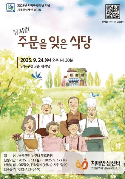 [경남도민뉴스=김용욱 기자] 인천시 남동구는 제18회 치매극복의 날(9월 21일)을 맞아 치매에 대한 인식을 개선하고 치매 친화적인 사회 분위기 조성을 위해 뮤지컬‘주문을 잊은 식당’을 개최한다고 20일 밝혔다.