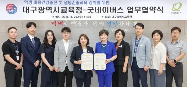[경남도민뉴스=백상현 기자] 대구시교육청은 8월 20일 오전 11시 시교육청 접견실에서 학생 마음건강 및 생명존중교육 강화를 위해 굿네이버스와 업무협약을 체결했다.