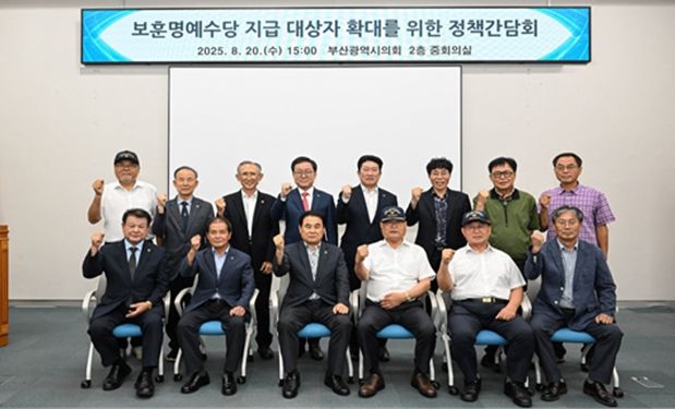 [경남도민뉴스=신석주 기자] 부산시의회가 보훈명예수당 지급 대상자 확대를 논의하기 위한 정책 간담회를 열고, 국가유공자들의 현장 목소리를 직접 청취했다. 이번 간담회는 보훈명예수당 지급 대상자를 무공·보국수훈자, 전상·공상군경, 5.18민주유공자까지 확대하는 '부산광역시 보훈문화 기본조례'의 개정 과정에서 조례 개정의 취지와 필요성, 실제 적용 과정에서의 고려사항 등을 폭넓게 논의하기 위해 개최됐다.