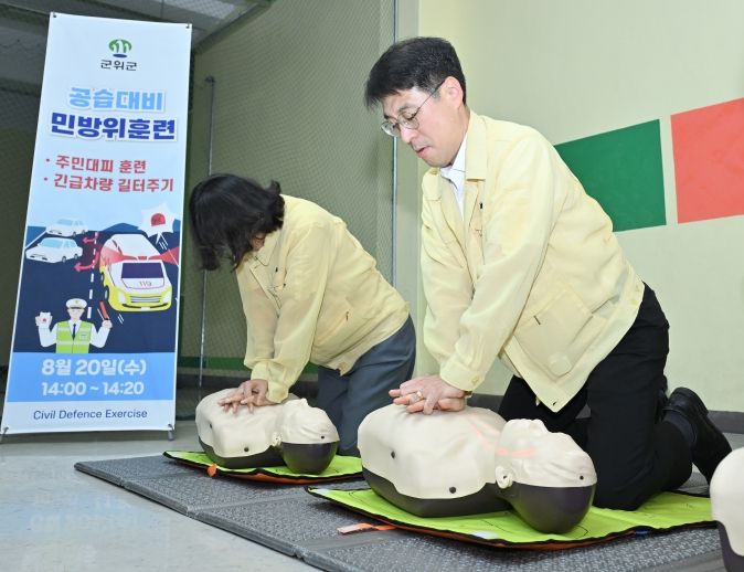 공습경보(오후 2시)에 따라 직원 및 민원인 30여 명과 함께 지하 민방위 대피소로 이동한 뒤 비상시 행동요령 등 안전교육을 듣고, 강북소방서가 주관한 긴급구조를 위한 심폐소생술 실습에 참여했다.