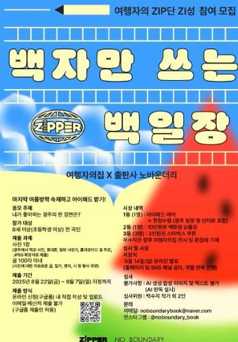 심사는 로컬 크리에이터 노바운더리 백수지 작가를 포함한 3인 위원단이 맡고, 시상은 9월 14일 ‘여행자의 ZIP’ SNS를 통해 발표될 예정이다.