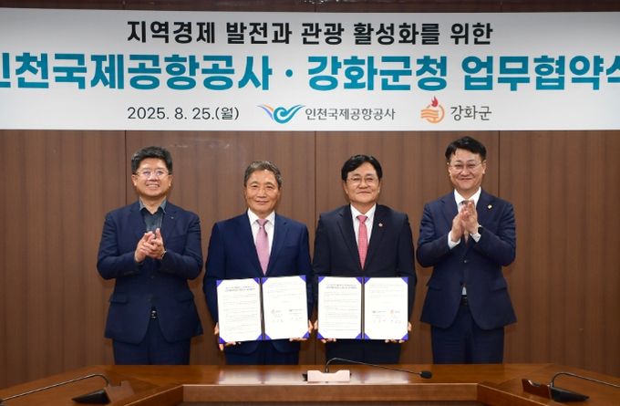 [경남도민뉴스=김용욱 기자] 강화군은 지난 25일 인천국제공항공사와 ‘관광 활성화 및 지역경제 발전 협력을 통한 상생’을 위한 업무협약을 체결했다.
