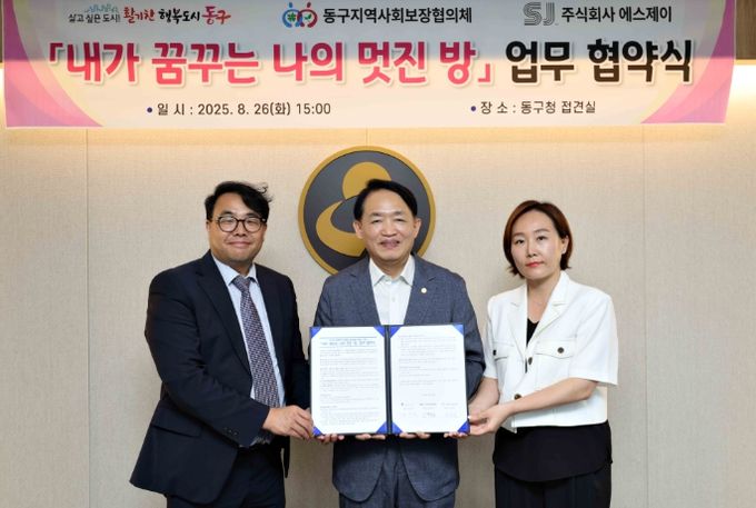 ㈜에스제이는 건축 및 인테리어 전문업체로 동구와 함께 향후 취약 계층아동 8가구를 발굴 지원할 예정이다.