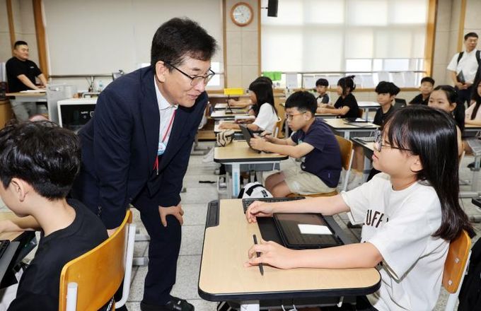 [경남도민뉴스=박만수 기자] 윤건영 충청북도교육감이 27일, 서현초등학교를 방문해 다채움 기초학력 진단검사 진행 상황을 직접 점검하고 학생과 교직원을 격려했다.