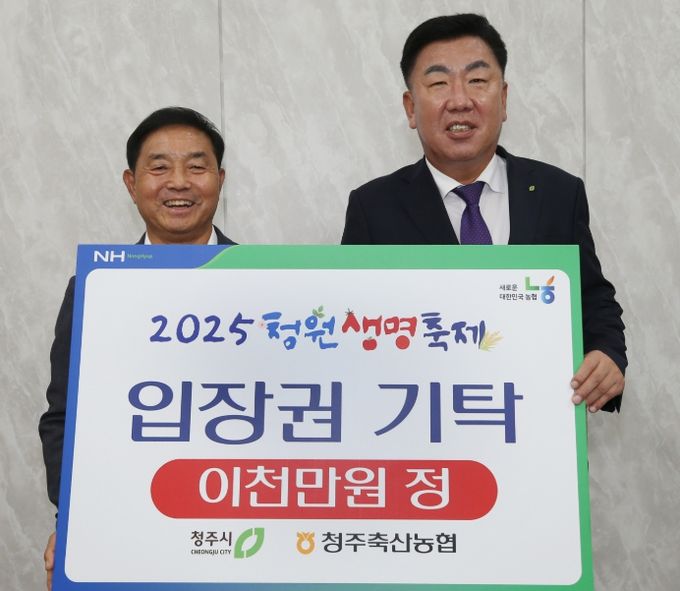 [경남도민뉴스=박만수 기자] 청주축산업협동조합은 27일 청주시청을 찾아 어려운 이웃에게 나눠달라며 2025 청원생명축제 입장권 4천매(2천만원 상당)를 기탁했다.