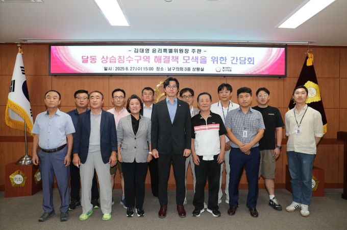 [경남도민뉴스=최재경 기자] 울산 남구의회 김대영 의원(국민의힘, 수암·달동)이 27일 3층 의회 상황실에서 이양임 부의장, 지역 주민과 관계 공무원이 참석한 가운데 달동 상습 침수 문제 해결을 위한 간담회를 개최했다.
