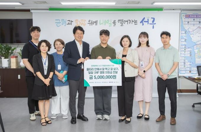 이날 전달된 지원금은 민간 기부 자원이 청년 활동에 연계될 수 있도록 지원 중인 ‘서구 십시일반 청년사랑 울타리 협의체’ 협약을 계기로 이뤄졌다.