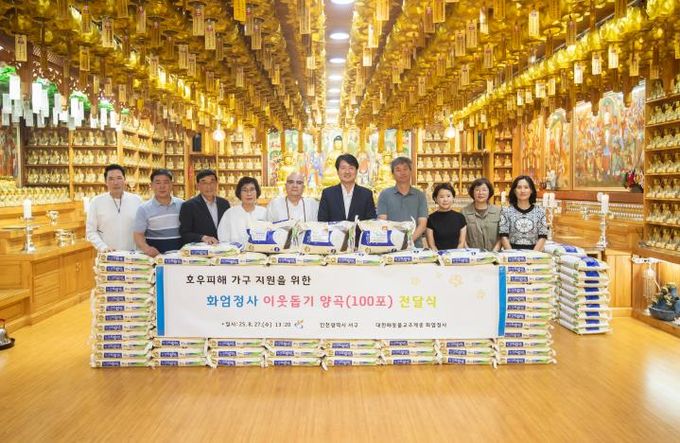 [경남도민뉴스=김용욱 기자] 인천 서구는 27일, 화엄정사가 양곡 100포를 기부했다고 28일 밝혔다. 이날 전달받은 양곡은 호우 피해를 입은 관내 취약계층 대상자에게 전달될 예정이다.