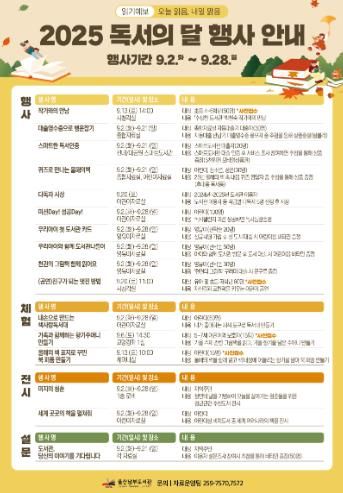 남부도서관은 9월 2일부터 28일까지 4개 분야 16개의 행사를 운영한다.
