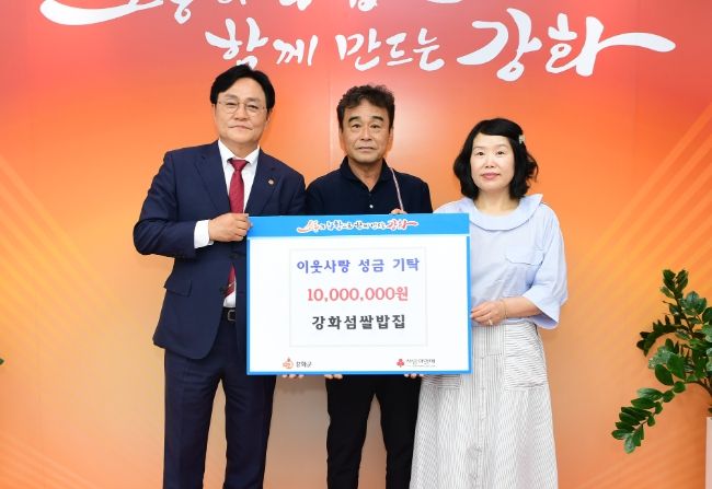 [경남도민뉴스=김용욱 기자] 강화군은 지난 8월 29일 지역 음식점인 강화섬쌀밥집(대표 한미영)이 어려운 이웃을 돕기 위해 성금 1천만 원을 기탁 했다고 밝혔다.
