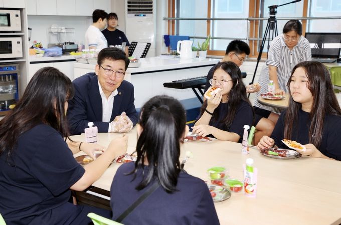 [경남도민뉴스=박만수 기자] 윤건영 충청북도교육감은 1일 아침, 수요자 중심 아침 간편식 제공 2차 시범 사업의 운영 상황을 점검하기 위해 신규 신청학교인 수곡중학교(교장 김경중)를 방문했다.