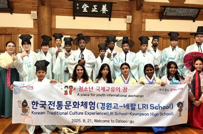 [경남도민뉴스=백상현 기자] 대구 달서구는 지난 8월 21일과 27일 병암서원에서 경원고-네팔 LRI School, 송현여고-일본 호세이대학 국제고 학생들을 대상으로 한 ‘글로벌 청소년 한국전통문화체험’을 성공적으로 마무리했다.