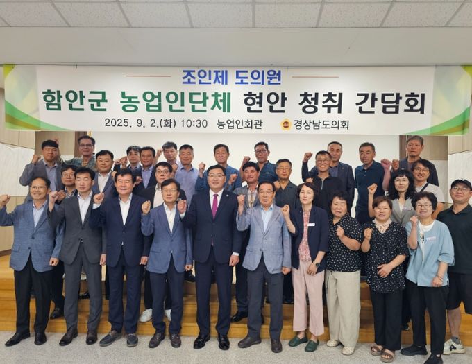 [경남도민뉴스=구인애 기자] 경상남도의회 조인제 의원(국민의힘, 함안2)은 2일 함안군 농업기술센터에서 지역 농업 현안을 논의하고 협조체계를 강화하기 위한 간담회를 개최했다.