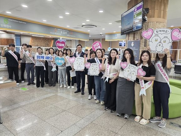 민원실 전 직원이 참여한 이번 캠페인은 민원실을 찾는 시민이 보다 친절한 응대를 받을 수 있도록 공무원의 서비스 마인드를 제고하고 민원인의 만족도를 높이기 위해 마련됐다.