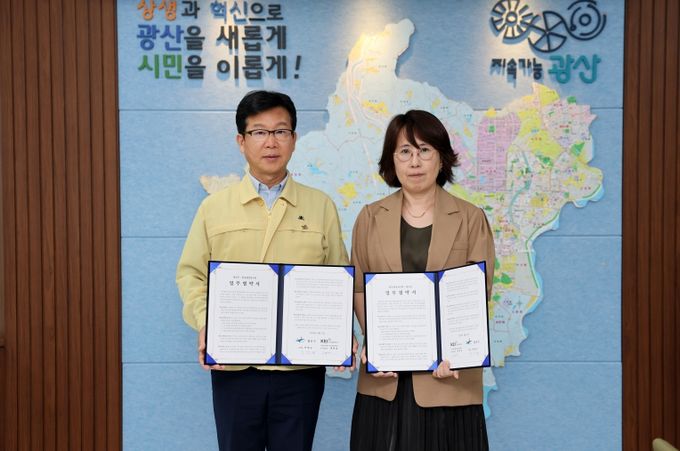 [경남도민뉴스=최현인 기자] 광주 광산구가 2일 구청장실에서 한국환경연구원(원장 김홍균)과 함께 ‘시민 참여형 기후적응 정책개발’ 업무협약을 체결했다.