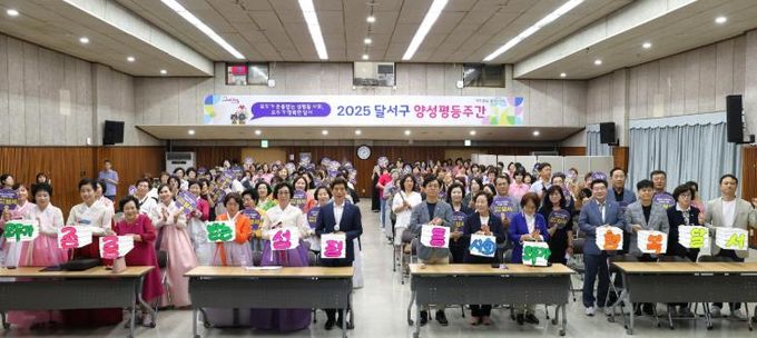 이태훈 달서구청장은 “양성평등은 여성만의 권리가 아니라 사회 구성원 모두가 누려야 할 기본 가치”라며 “일과 가정이 조화를 이루는 도시, 모두가 존중받고 행복한 달서를 위해 정책과 현장 변화를 꾸준히 이어가겠다”고 밝혔다.