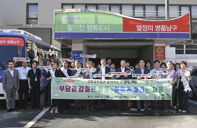 [경남도민뉴스=백상현 기자] 대구 남구는 지난 9월 1일, 과장급 이상 간부공무원이 함께하는 "갑질 근절 다짐 캠페인"을 실시했다.