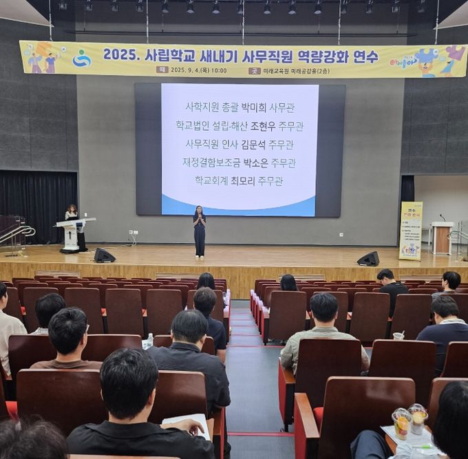 이동춘 학교지원과장은 “이번 연수를 통해 새내기 사무직원들이 학교 현장에서 겪는 어려움을 세심하게 살피고, 실질적인 지원을 아끼지 않겠다”라며 “사학 행정의 전문성을 높이는 것이 곧 자립과 공존의 기반이 되어, 사학 발전을 이끄는 든든한 밑거름이 될 수 있도록 최선을 다하겠다”라고 밝혔다.