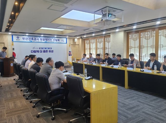 [경남도민뉴스=도문호 기자] 대전 유성구는 4일 유성구청 중회의실에서 안전사고 예방과 지역 건설업체 참여 활성화를 위해 민간 대형 건축 공사장 현장대리인 간담회를 개최했다.
