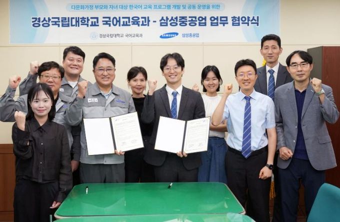 업무협약식에는 경상국립대학교 국어교육과 교수들과 삼성중공업 주요 관계자들이 참석했다.