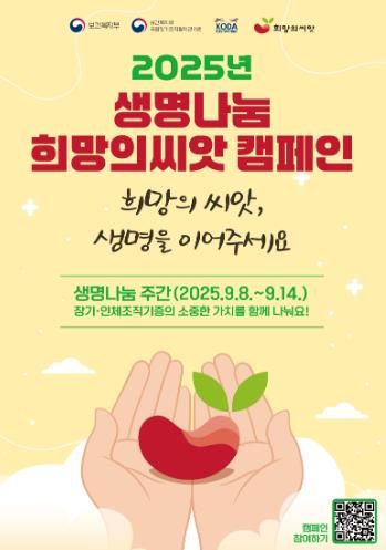 ‘생명나눔’은 자신의 장기조직 등을 대가 없이 기증하는 고귀한 행동으로, 1명의 뇌사장기기증자는 최대 9명에게, 인체조직기증자는 최대 100여 명에게 새로운 삶을 선물할 수 있다.