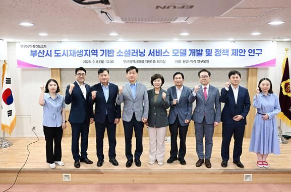 김재운 대표의원은 “착수보고회를 통해 연구 방향을 잡고, 간담회에서 주민과 현장이 직접 참여했으며, 오늘은 그 성과를 점검하고 제도화 전략을 구체화하는 자리였다”며, “소셜러닝은 단순한 운동을 넘어 건강·돌봄·안전·문화가 결합된 부산형 지역 돌봄 모델로서, 시민이 주도하는 지속가능한 사회서비스 체계를 만들어갈 것”이라고 강조했다.