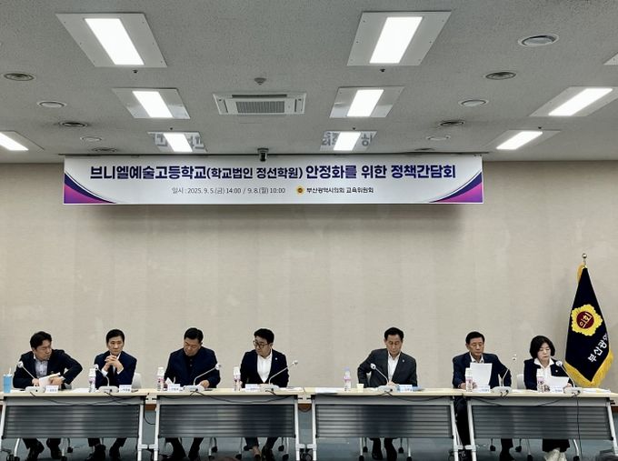 [경남도민뉴스=신석주 기자] 부산광역시의회 교육위원회는 9월 5일과 8일 양일간 시의회 대회의실에서 브니엘예술고등학교(학교법인 정선학원) 안정화 방안을 논의하기 위한 정책간담회를 개최했다.