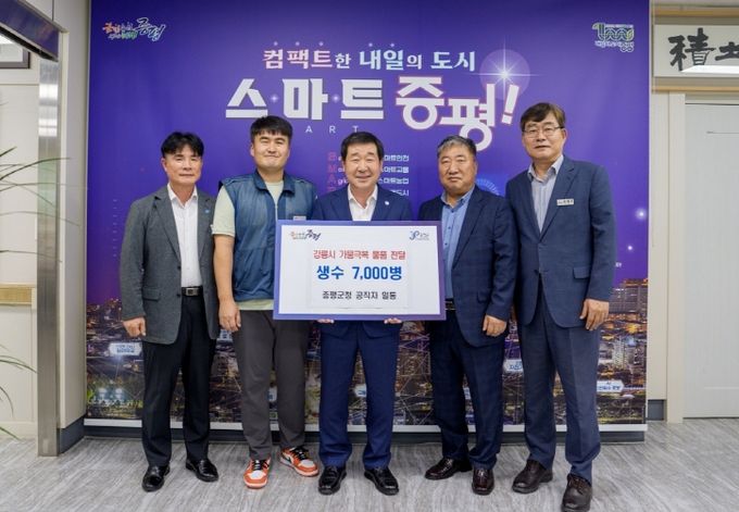 [경남도민뉴스=박만수 기자] 충북 증평군 공직자들이 강릉지역의 극심한 가뭄피해 극복을 돕기 위해 십시일반 모금한 성금으로 생수 7천여 병을 지원하기로 했다.
