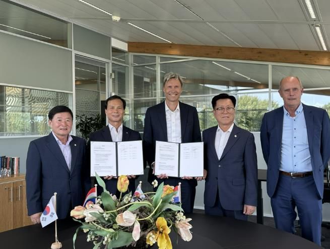 [경남도민뉴스=박만수 기자] 스마트농업 우수정책 벤치마킹을 위해 네덜란드를 견학 중인 음성군 대표단은 첫날 글로벌 스마트팜 솔루션 1위 기업 프리바(PRIVA)와 업무협약을 체결하며 ‘음성 그린에너지 스마트농업타운 조성사업’ 연계협력의 첫발을 내디뎠다.