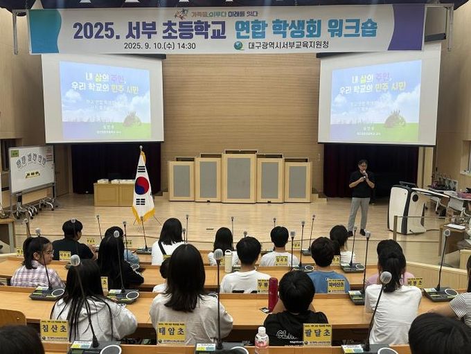 [경남도민뉴스=백상현 기자] 대구서부교육지원청은 9월 10일 대구민주시민교육센터 세담홀에서 관내 초등학교 학생대표 56명이 참여한 가운데 ‘2025. 제3회 서부 초등학교 연합 학생회’를 개최했다.