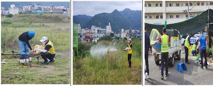 9월 12일에는 대명10동 1647-1번지와 대명3동 1745-9번지에 대해 1개 반 2명으로 편성된 방역기동반이 정비구역 내외 쓰레기 투척지, 물웅덩이 등에 집중적으로 차량용 방역을 실시하고, 사람이 접근하기 힘든 8천 평 규모의 광범위한 정비구역은 드론을 활용하여특별 방역 활동으로 실시했다.