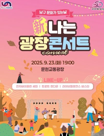 [경남도민뉴스=신석주 기자] 부산 남구는 오는 9월 23일 남구 문현교통광장에서 2025 남구 문화가 있는 날‘新나는 광장콘서트’를 개최한다.