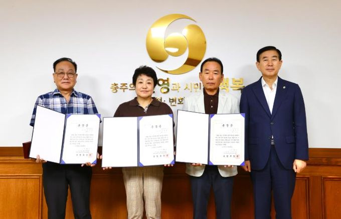 [경남도민뉴스=박만수 기자] 충주시는 17일 시청 소회의실에서 6.25 전쟁에 참전해 공을 세운 고 안종국 중사, 고 이윤탁 대위, 고 최영도 병장의 유족에게 화랑무공훈장을 전수했다.